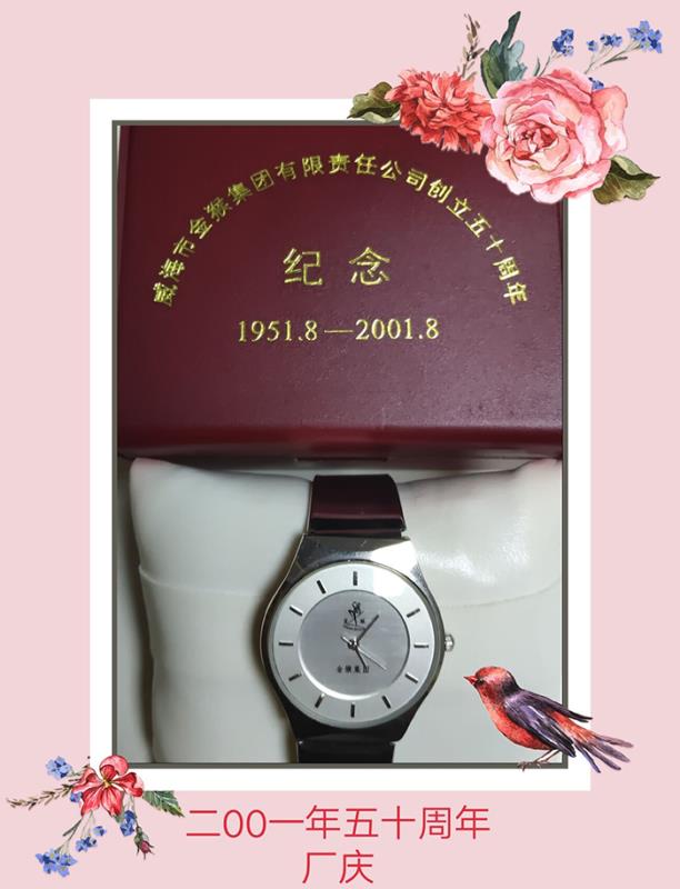記憶三:鍍金屬相牌和情侶手表——2001年金猴創立50周年時企業為職工定制的署名鍍金屬相牌和情侶手表。在過去的十年里,企業得到了高速發展,由一個名不見經傳的單一制鞋小廠,發展成為家喻戶曉涉足多個領域的集團公司。隨著“穿金猴皮鞋,走金光大道”的廣告語通過中央電視臺黃金時段傳遍大江南北,北京、太原、沈陽、濟南等全國各地的百貨大樓皮鞋專柜前購買金猴皮鞋的人接踵而至,人山人海,互相簇擁,只為了能夠買到一雙金猴皮鞋。商場的采購人員提著現金開車到金猴排隊提貨,有的竟排半個月的隊才能提到現貨。主業繁榮為企業發展打下了堅實的物質基礎,這期間企業的名稱由“威海市皮鞋工業集團公司”改為“威海市金猴集團公司”,先后合并了“威海市皮件二廠”、“威海市皮件一廠”,投資成立了“金猴集團進出口貿易公司”、“金猴集團房地產開發公司”等子公司。1998年,企業名稱改為“威海市金猴集團有限責任公司”,實施了股份制改造,發生了脫胎換骨的變化,干部職工人人持股,干勁空前高漲。每一次企業名稱的改變,都見證了企業在發展的過程中登上了一個新臺階。因此,2001年為慶祝金猴集團創立五十周年,鼓勵廣大干部職工干事創業積極性,集團領導決定給每位在職和離退休的干部職工私人定制一塊署名鍍金屬相牌,并配發一對情侶手表,以表達對金猴集團創立五十周年的永久紀念。